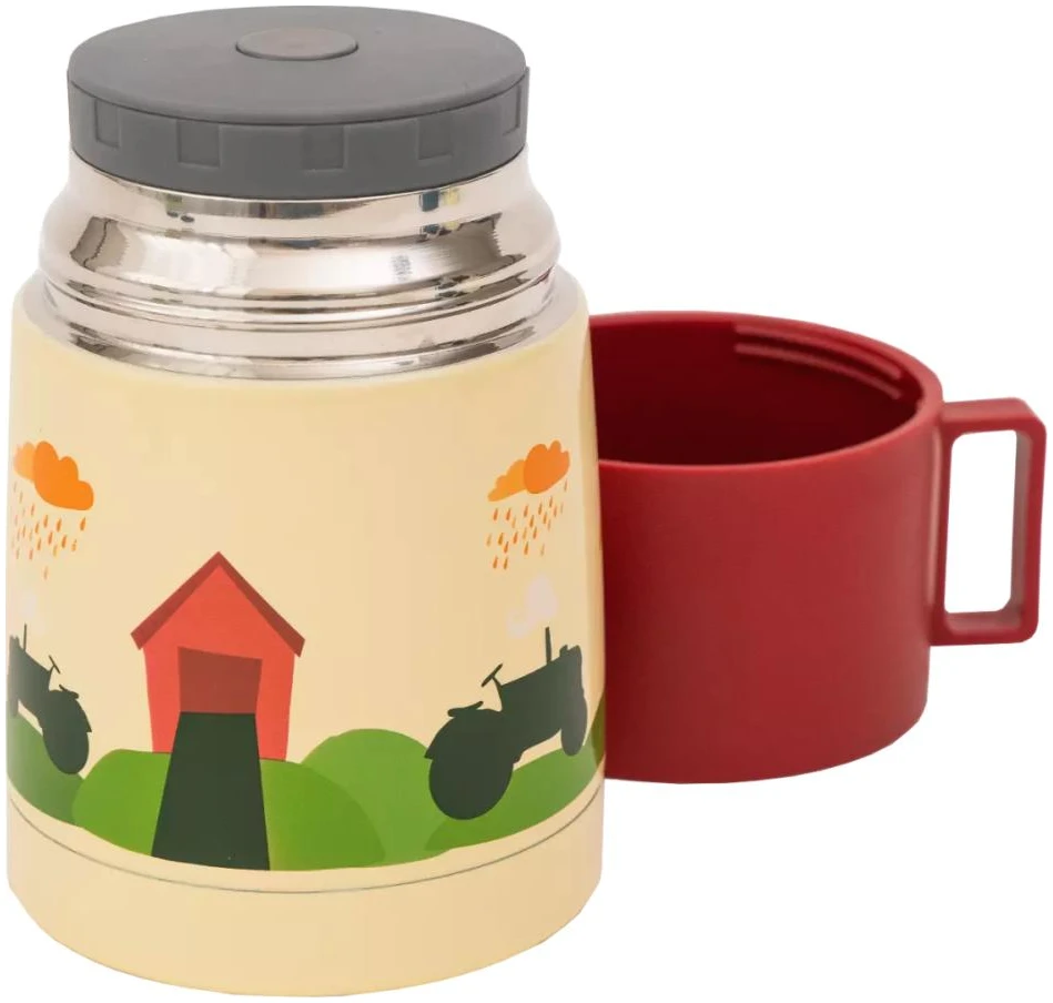 Denne nydelige mattermosen rommer ca. 500 ml. Den passer like godt på tur i skogen som til hverdagslunsjen. Fyll den med grøt, suppe, yoghurt eller andre varme og kalde retter. Våre mattermoser er laget av rustfritt, resirkulerbart stål – samme materiale som er i stålgrytene du har på kjøkkenet. Dette er kjent for å være et trygt valg, fordi man unngår noen form for belegning inni selve termosen. Korkene er laget av plast, og har trykknapp for å utjevne trykket i termosen. Det er ikke funnet ftalater eller BPA i korker eller kopper. Mattermosene har dobbel vegg og bunn, og holder godt på varmen. En god termos med andre ord!