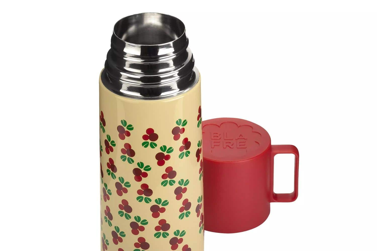 Nydelig fargeklatt av en termos! Nostalgisk – men med forbedringer, ikke minst når det gjelder plastdelene og materialbruk. Her er det ikke BPA eller ftalater. Har du forresten sansen for sommerpikniker? En termos holder også drikken din kald, så den kan brukes både til kakao på høsten og kald saft på sommeren.