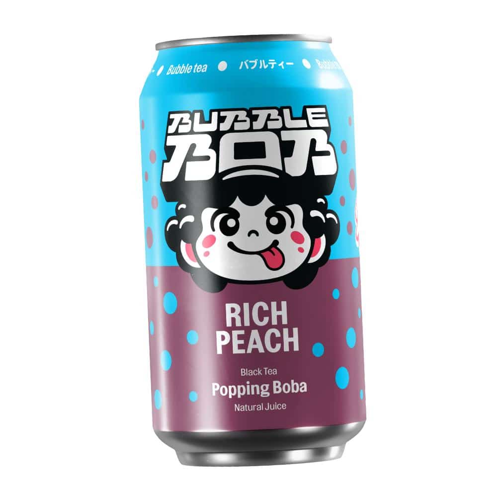 smaken av ren sommer på boks! 20% deilig ferskenjucie blandet med sort te, og boba kuler!