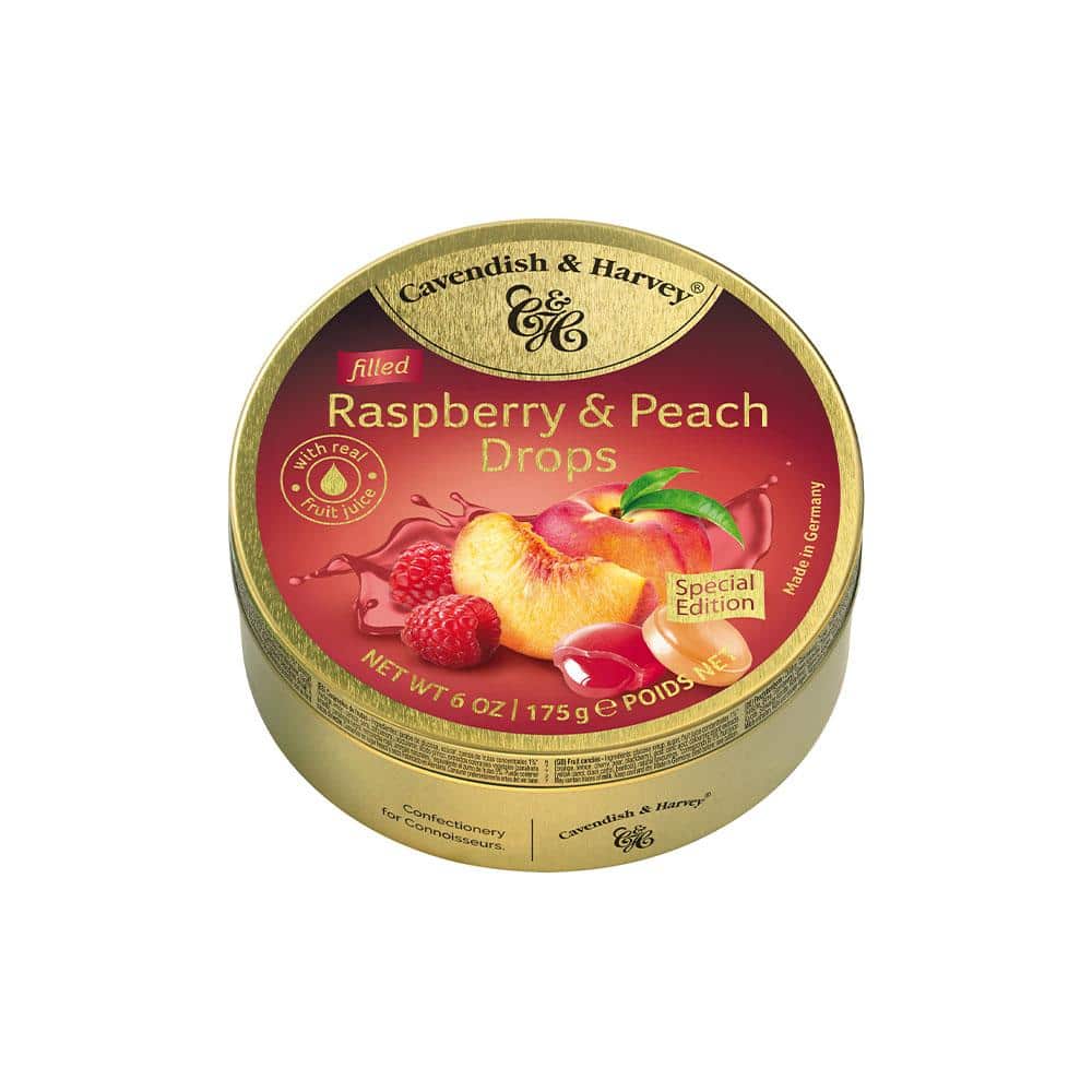 Oppdag din nye favorittblanding med denne spesialutgaven av fylte fruktdrops fra Cavendish & Harvey. Deilige bringebærjuicedrops og himmelske ferskenfruktdrops utfyller hverandre for å lage en cocktail av ren nytelse.