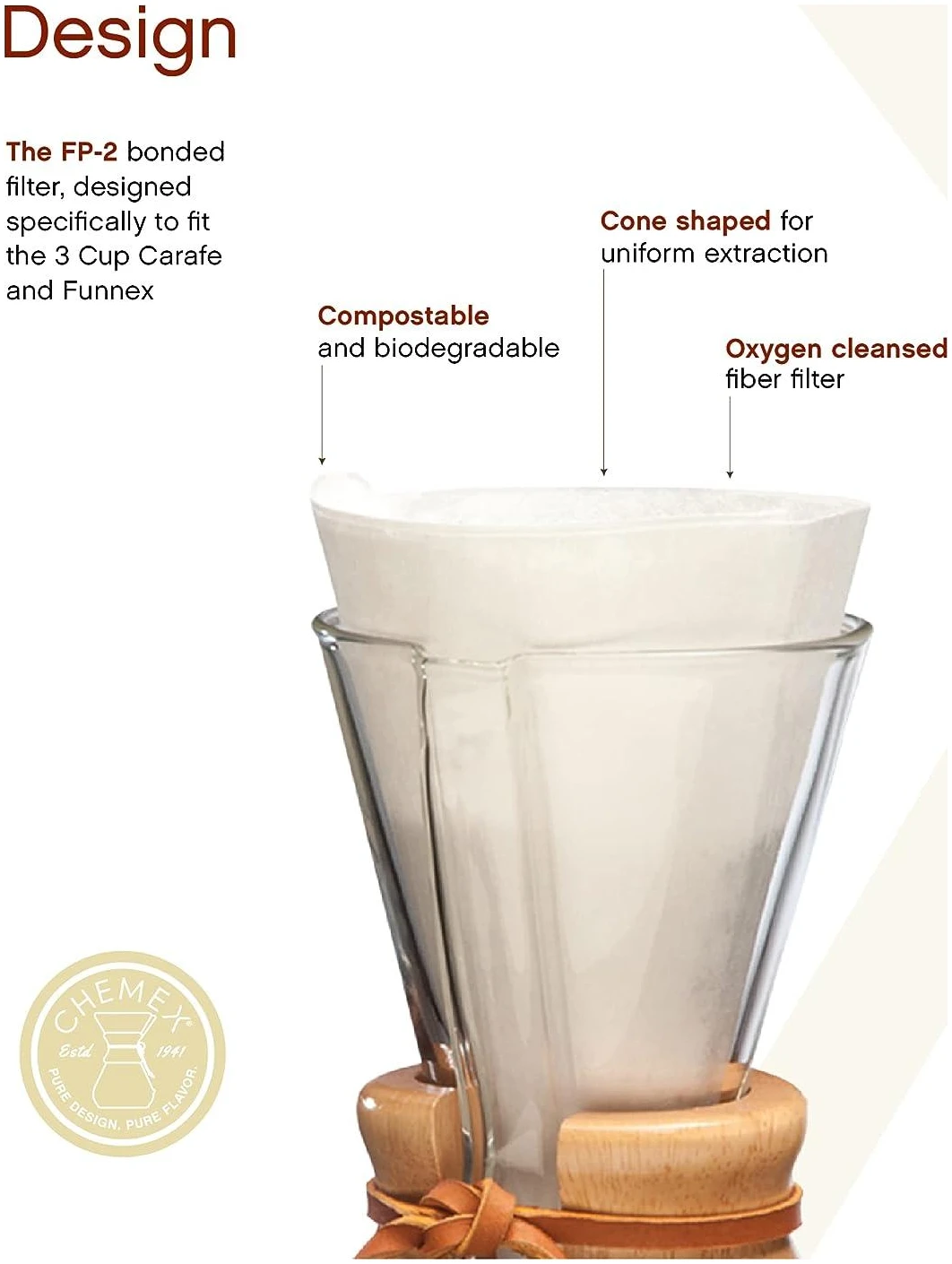 CHEMEX Bonded™-filtre er basert på laboratoriekvalitetspapir og designet spesielt for å fjerne urenheter, og etterlater kun koffein og ønskelige aromatiske oljer.