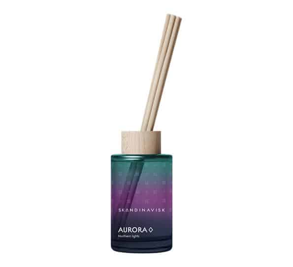Aurora duftspreder 100ml fra svenske Skandinavisk fanger essensen av nordlyset og bringer den inn i hjemmet ditt med en mild, stemningsfull duft av sandeltre, einebær, jasmin og lime. Duftblandingen er inspirert av den nordiske natten – både mystisk og beroligende – og gir en harmonisk atmosfære med naturlig preg.