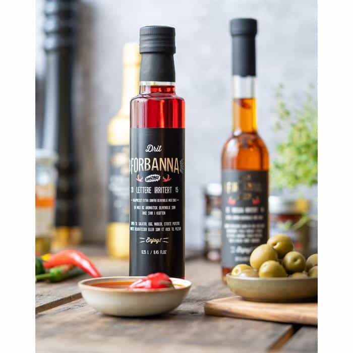 Prøv Drit Forbannas lettere irritert olivenolje med chili. Mild og aromatisk. svir ikke i kjeften!