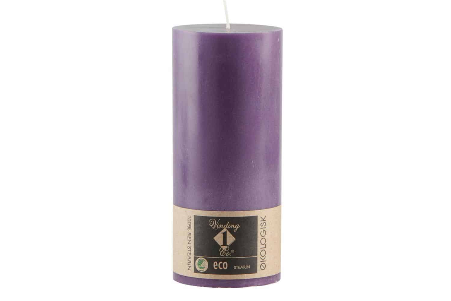 Svanemerket kubbelys i 100 % stearin fra Vinding ECO i fargen mørk lilla.