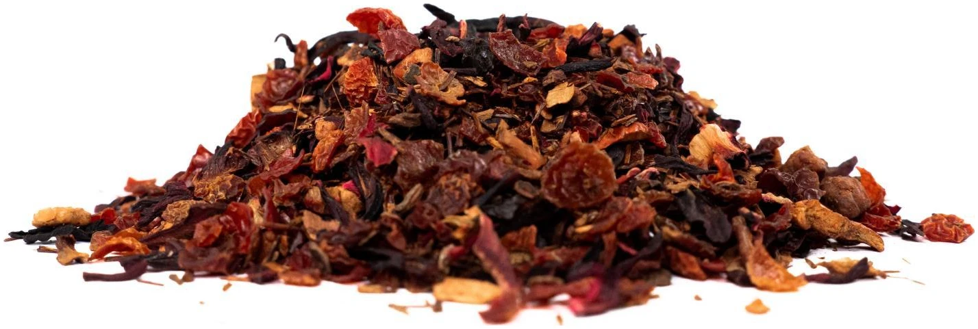 Eple & Kanel Frukt-te er som å ta en bit av en deilig eplekake og føle varmen fra kanelen spre seg i ganen din. Denne teen er en varm omfavnelse og den perfekte følgesvenn for å skape hygge i hverdagen.