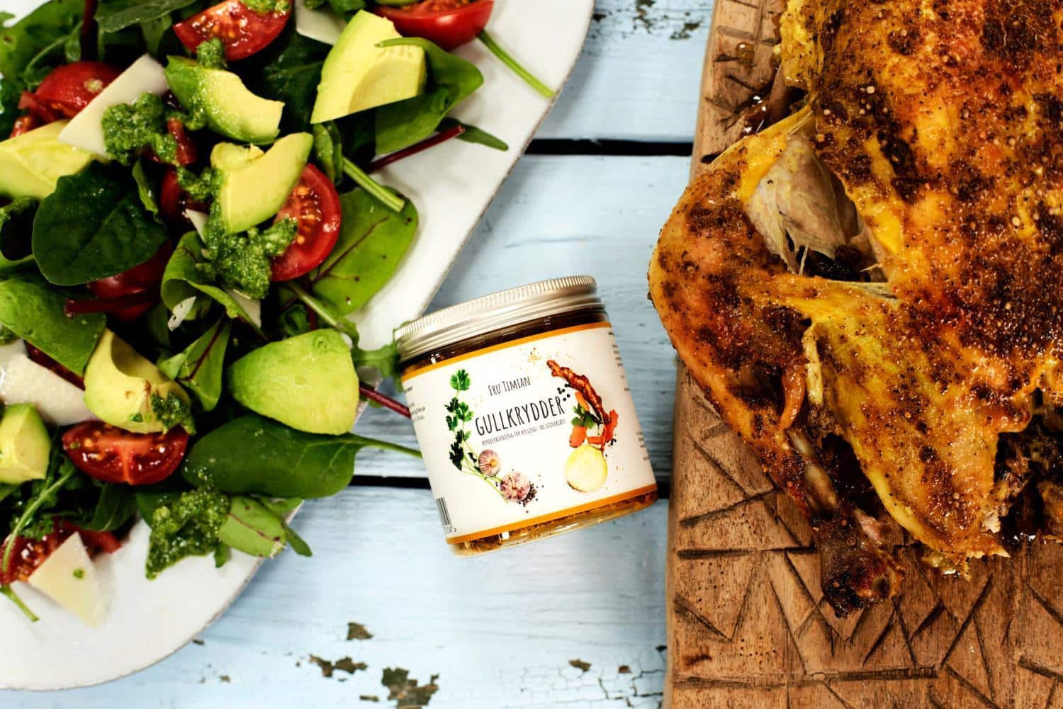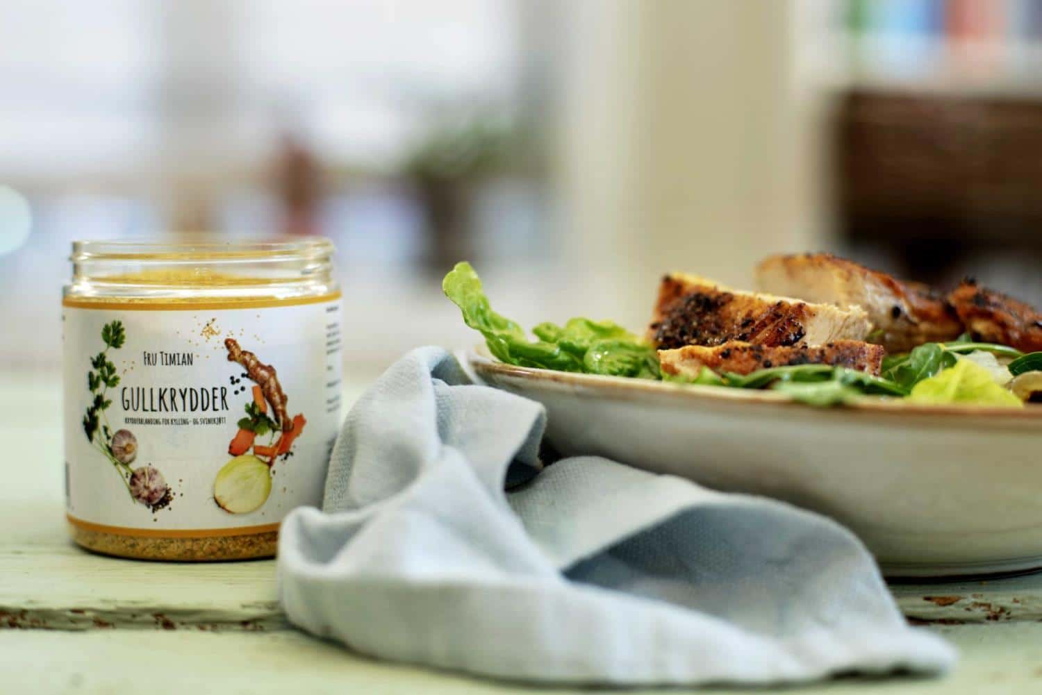 Vi liker å si at Fru Timian GULLKRYDDER gjør all maten til GULL! Denne krydderblandingen er kjempegod til både kyllingkjøtt og svinekjøtt, og den er super på så mange forskjellige vegetarretter. Ha gjerne boksen stående på bordet, så kan du drysse litt over maten ved servering også.