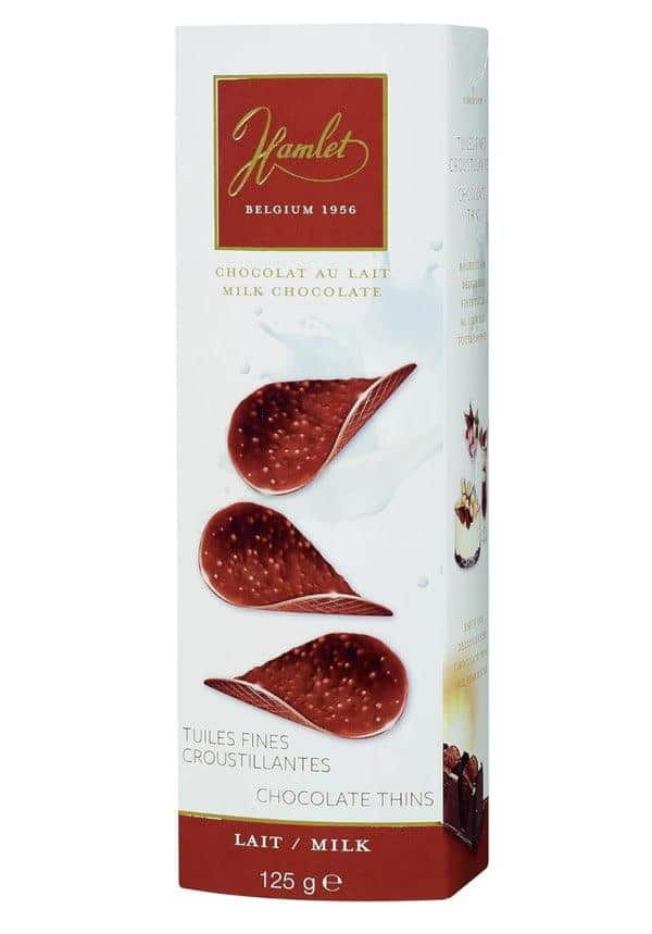 Tynne, knasende melkesjokolade flak med puffet ris.