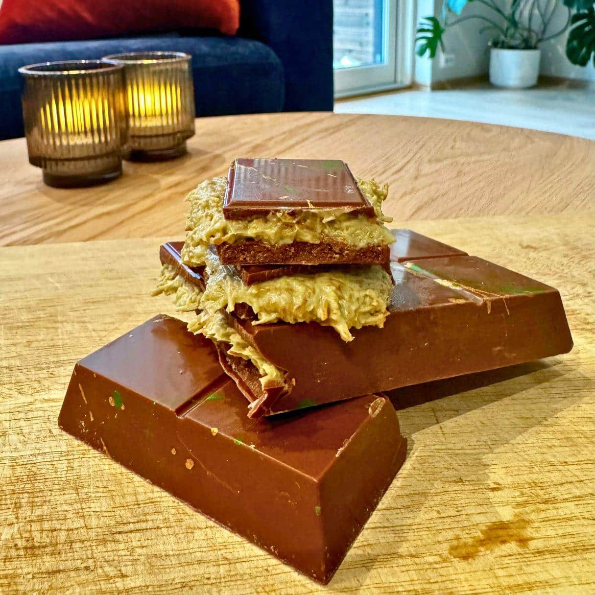 Årets store trend i sosiale medier som bare må oppleves! Melkesjokoladeplate fra TrondheimSjokolade fylt med deilig pistasjkrem og sprøstekt filodeig.