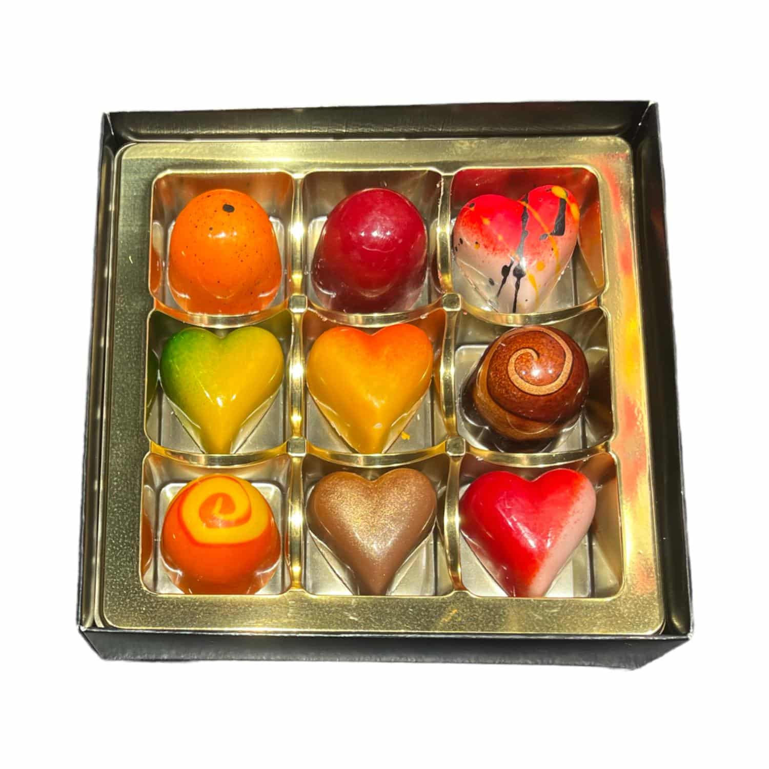 Norsk håndlaget konfekt fra Jentene på Tunet. 9 biter i eska. Esken vil bestå av et utvalg av bitene vi har i konfektdisken vår. Eventuelt kan du legge inn en kommentar til bestillingen med bitene du ønsker.
