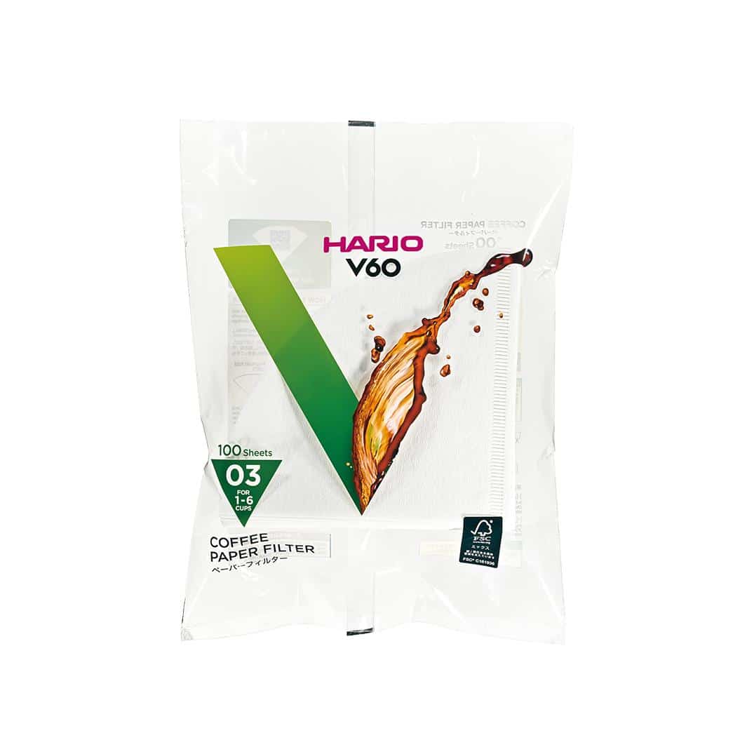 Papirfilterene fra Hario er designet spesifikt med tanke på håndbrygg. Disse er produsert i Japan spesielt for Hario V60. Til forskjell fra andre filter smaker det utrolig lite av selve filteret ved kontakt med vann, noe som gjør at kaffen smaker bedre. Hario V60 med Hario filter er blitt selve standarden for kvalitetskaffe og håndbrygg over hele verden.