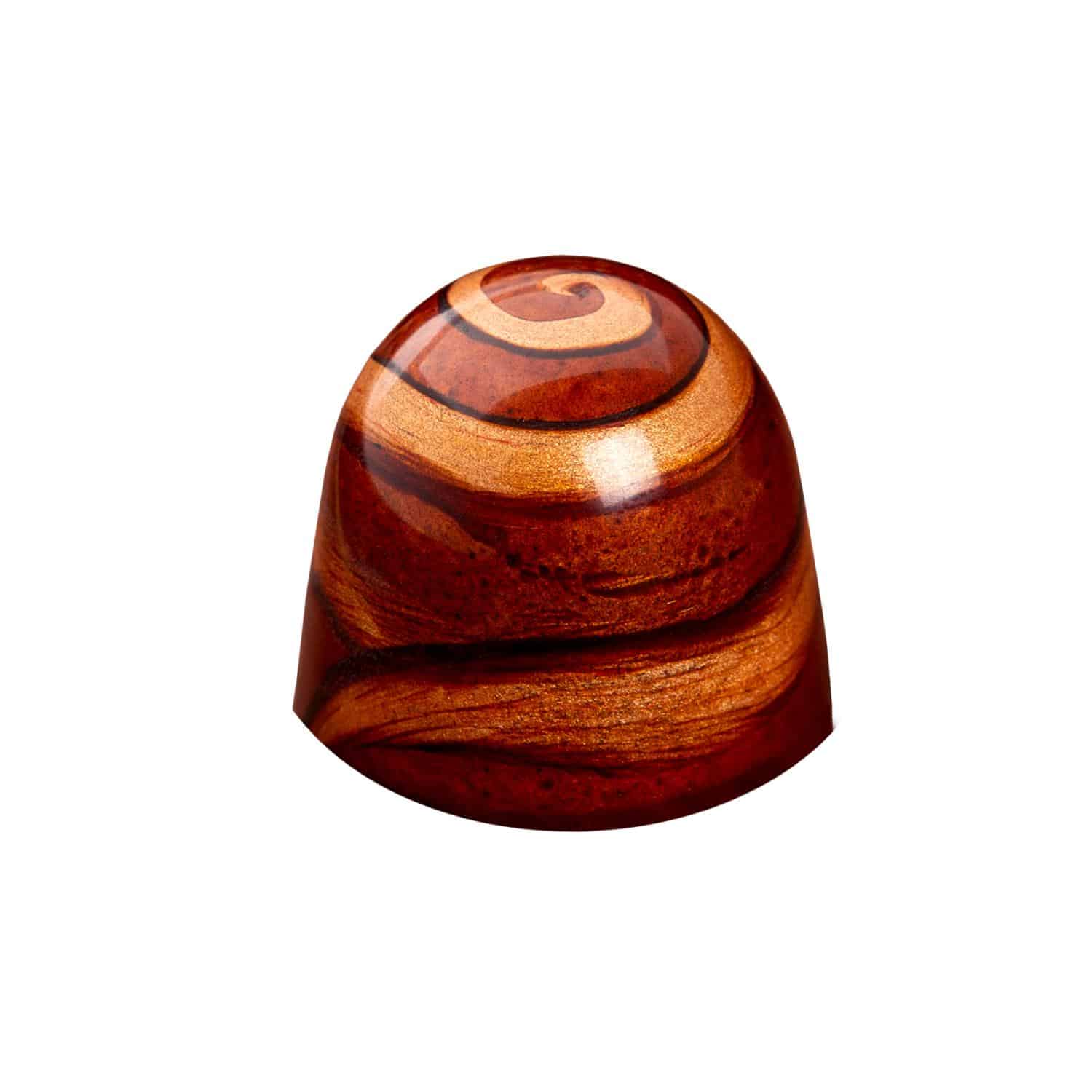 Innhold: Kakaomasse (kakaobønner, sukker, kakaofett, soyalecitin, vaniljeekstrakt og melkepulver), hasselnøtt, sorbitol, salt, konditorfarge E102, E122, E132 E172 og E555.