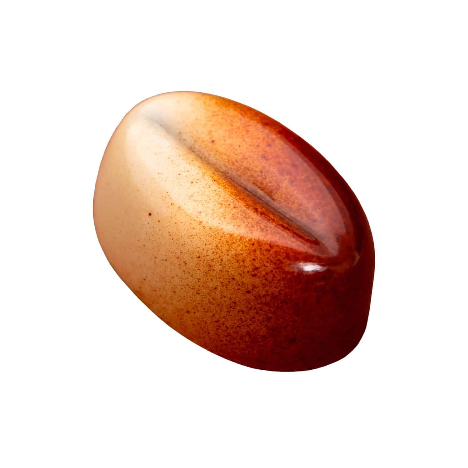 Sjokolade med et kraftig kaffefyll trekt med hvit sjokolade.