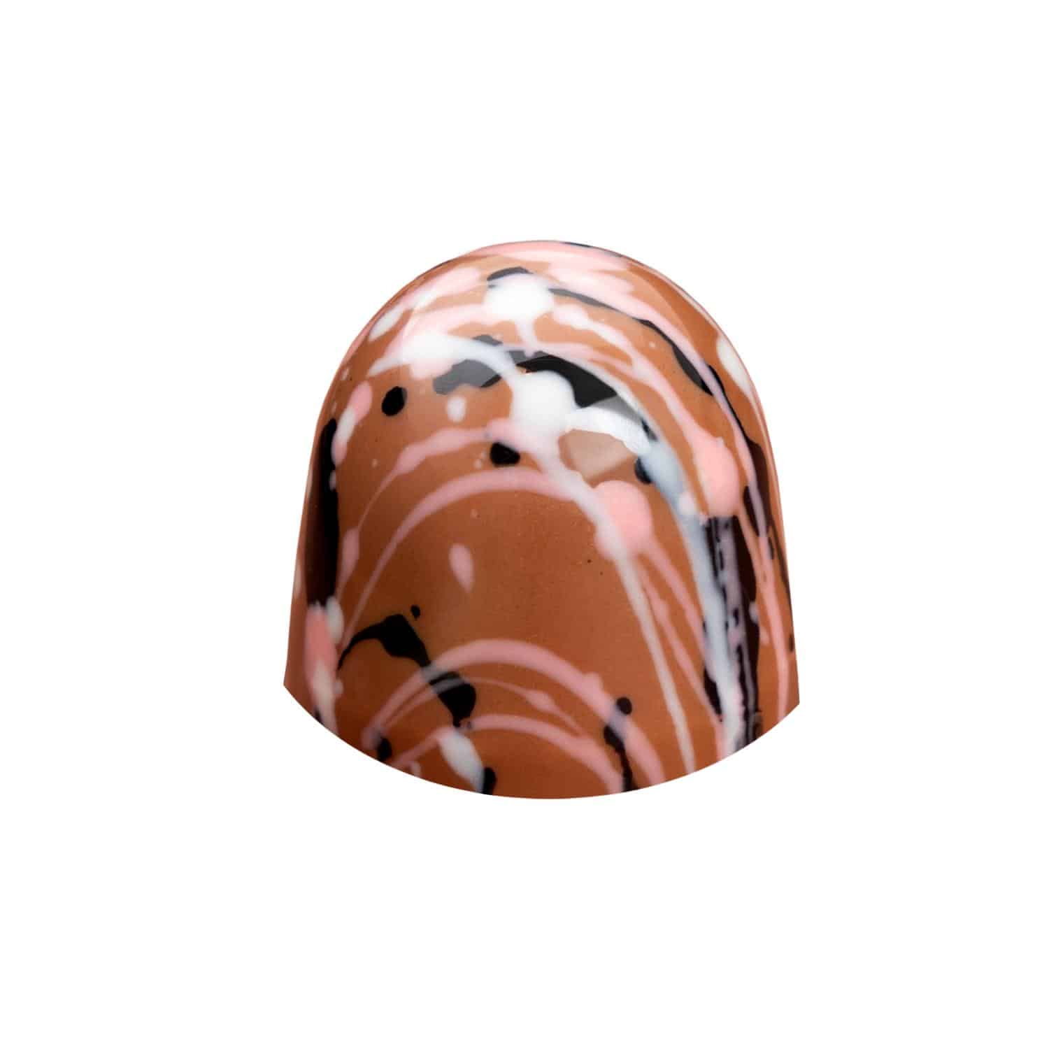 Melkesjokolade fylt med salt lakris balansert med søt bringebær og et hint av chili.