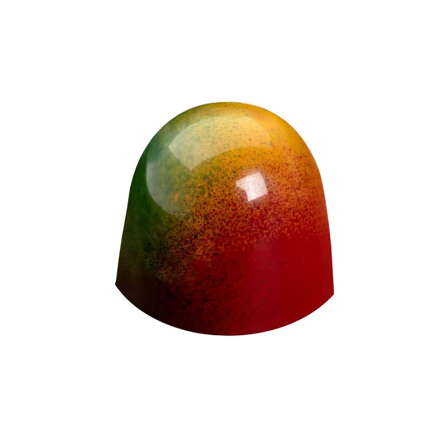 Innhold: Kakaomasse (kakaobønner, sukker, kakaofett, soyalecitin, vaniljeekstrakt og melkepulver), fløte, mango, sitron, glukose/invertsukker, sorbitol, sitronsyre, pektin, smør, likør, salt, konditorfarge E102, E124 og E142.