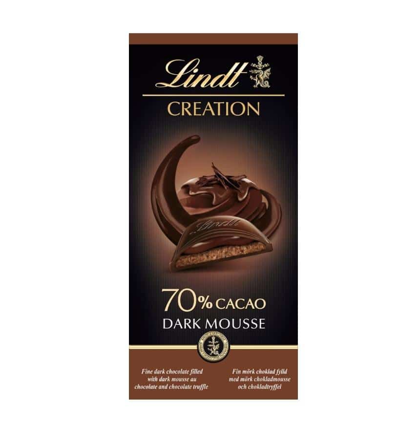 Lindt Creation Cacao dark mousse er den fineste mørke sjokoladen fylt med kremet sjokolademousse og glatt sjokoladetrøffel.