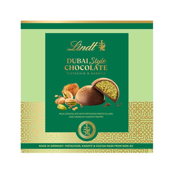Oppdag den eksklusive nytelsen med Lindt Dubai Style Chocolate. La våre Lindt Maîtres Chocolatiers ta deg med på en reise inn i den herlige og luksuriøse verdenen av Dubai Style Chocolate, hvor konfekt, kunst og innovasjon smelter sammen. Nyt deilig smeltende Lindt-melkesjokolade, som imponerer med et uforlignelig fyll laget av den fineste pistasjpastaen og sprø Kadayif.