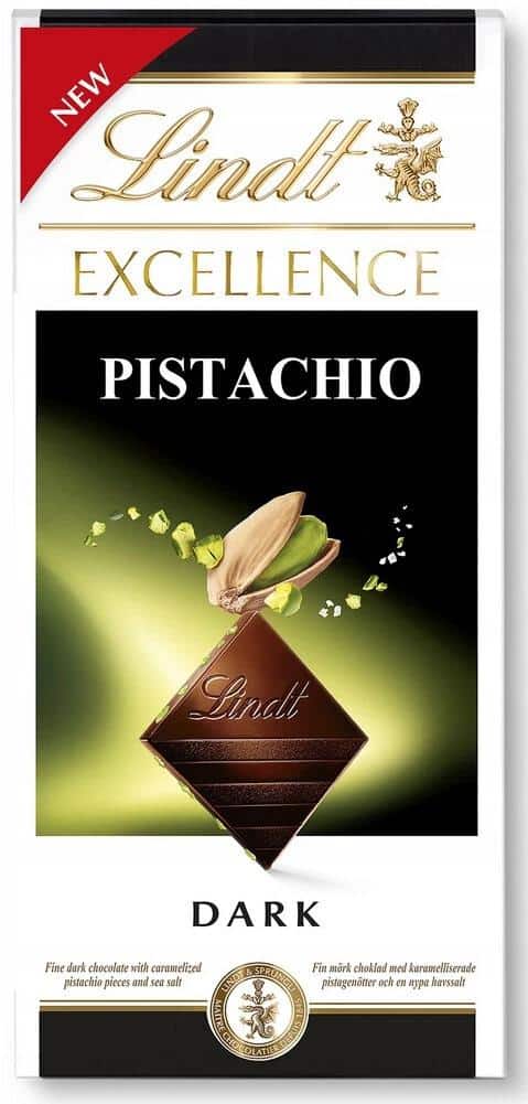 Sjokoladeplate av mørk sjokolade med pistasj.