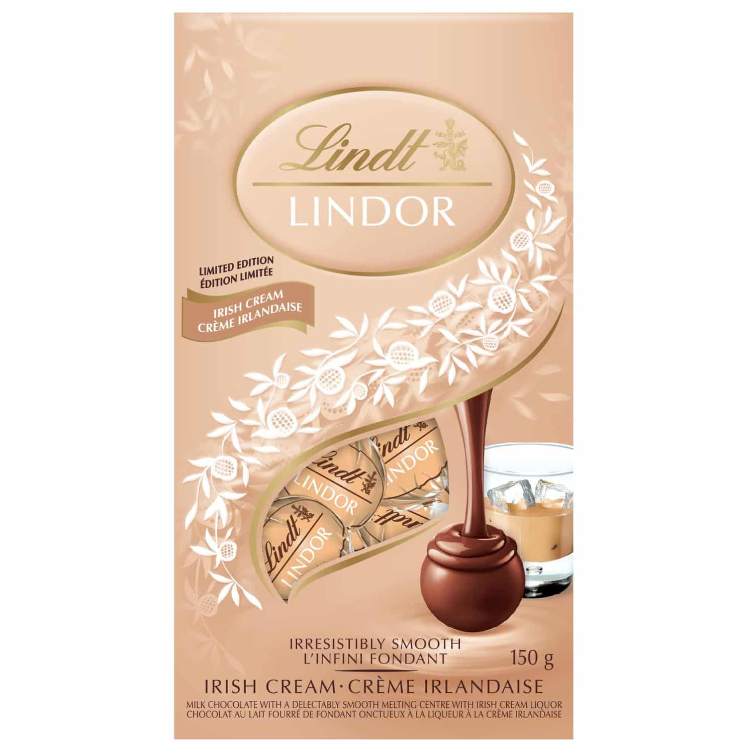 Smelt inn i et øyeblikk av lykke og nyt en ferieklassiker med den nye og begrensede utgaven LINDOR Irish Cream Milk sjokoladetrøfler. Disse festlige trøflene i begrenset opplag inneholder en jevn og uimotståelig alkoholinfundert melkesjokoladeopplevelse. Infundert med silkeaktig og kremet irsk kremlikør, du trenger ikke være irsk for å bli forelsket i disse trøflene.
