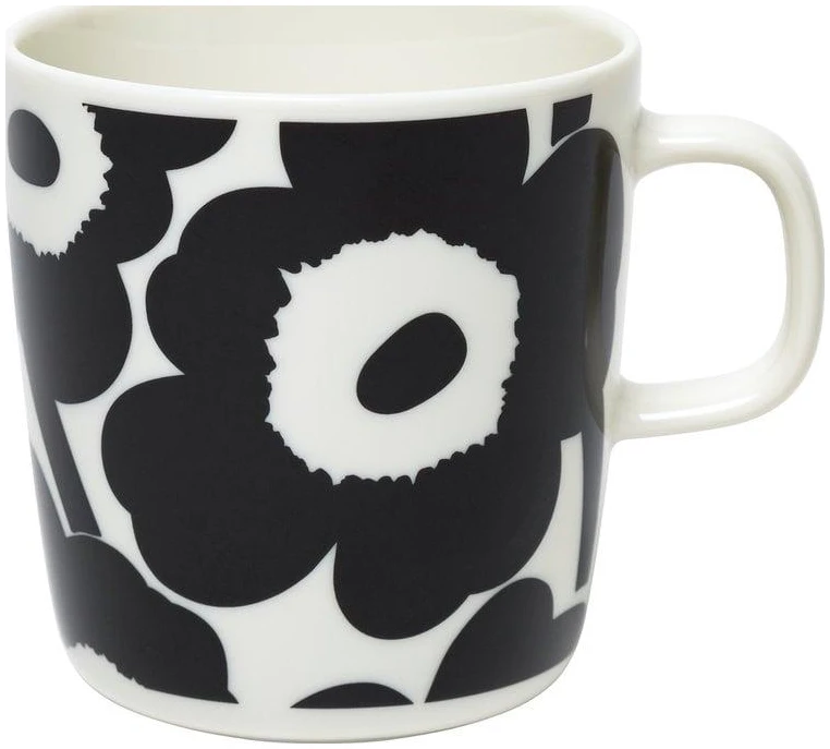 Dette store Oiva-kruset er laget av hvitt steintøy som tåler oppvaskmaskin, stekeovn, mikrobølgeovn og fryser.