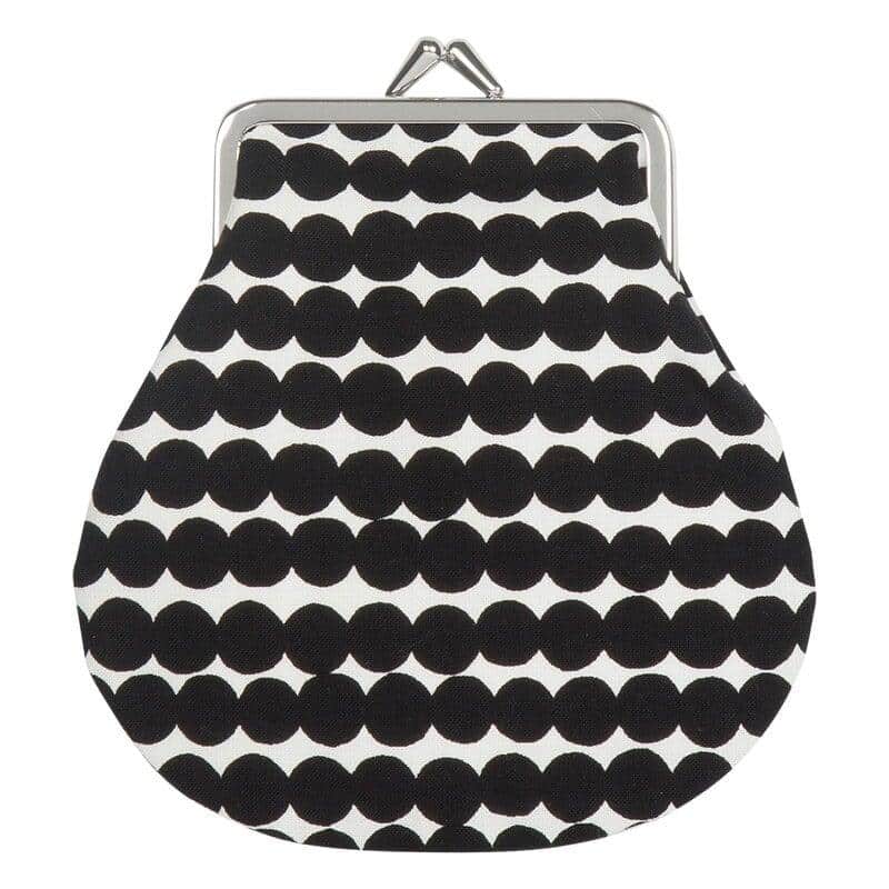 Pikku Kukkaro-pungen er laget av bomull og er en flerbruksklassiker. Denne pungen er ideell for små daglige nødvendigheter og mye mer. Den har en metallramme som er lett å åpne og lukke. Det sorte og hvite Räsymatto-mønsteret er trykt i Helsinki.