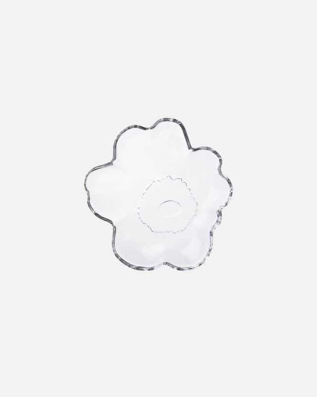 Denne lille glasstallerkenen er formet som Unikko-blomsten. Vi anbefaler å vaske tallerkenen for hånd.
