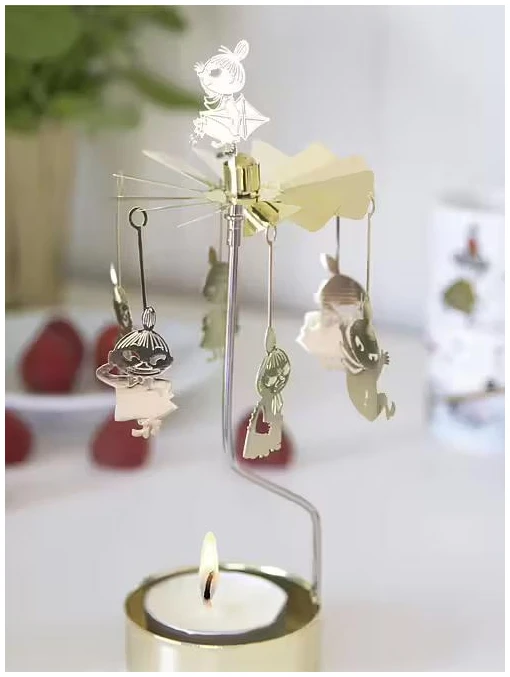 Mummi Englespill (Angel Chime) med motiv av Lillemy i gull. Stearinlys følger med.