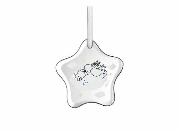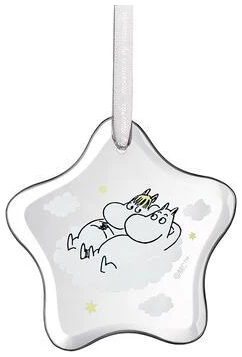 Mummi glass dekor med motiv av Snorkfrøken og Mummitrollet, laget i glass og er 8cm.