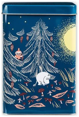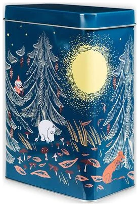 Kaffeboks i tinn med Mummi-motiv og lufttett hengslet lokk. Passer perfekt til en 500 gr pose kaffe.