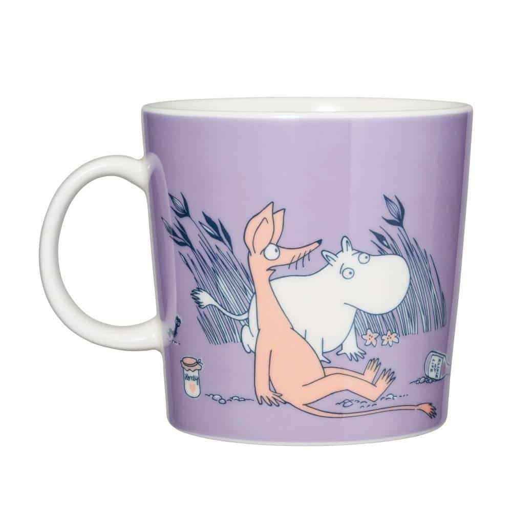 Moomin by Arabia introduserer nye bokstaver til samlingen, og du kan nå stave ordet FAMILY med alfabetkrusene! På N-kruset finner vi Hufsa som har skremt Mummitrollet og Sniff.