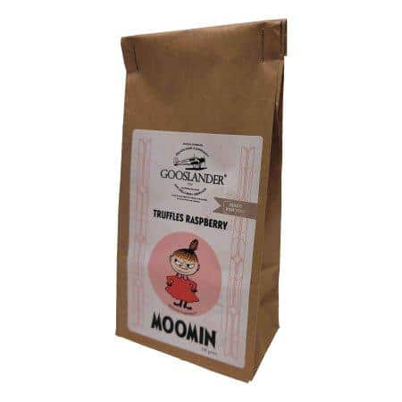 Deilig kremet sjokoladetrøffel med bringebærsmak. Trøflene er rullet i kakaopulver, og smelter i munnen!