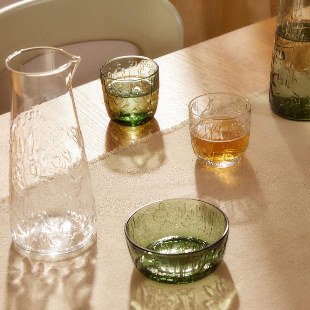Den nye glasskolleksjonen Mystical Forest fra Moomin by Arabia, består av preget servise som er laget med moderne og tradisjonelle glassteknikker i den verdensberømte Iittala Glass Factory i Finland.