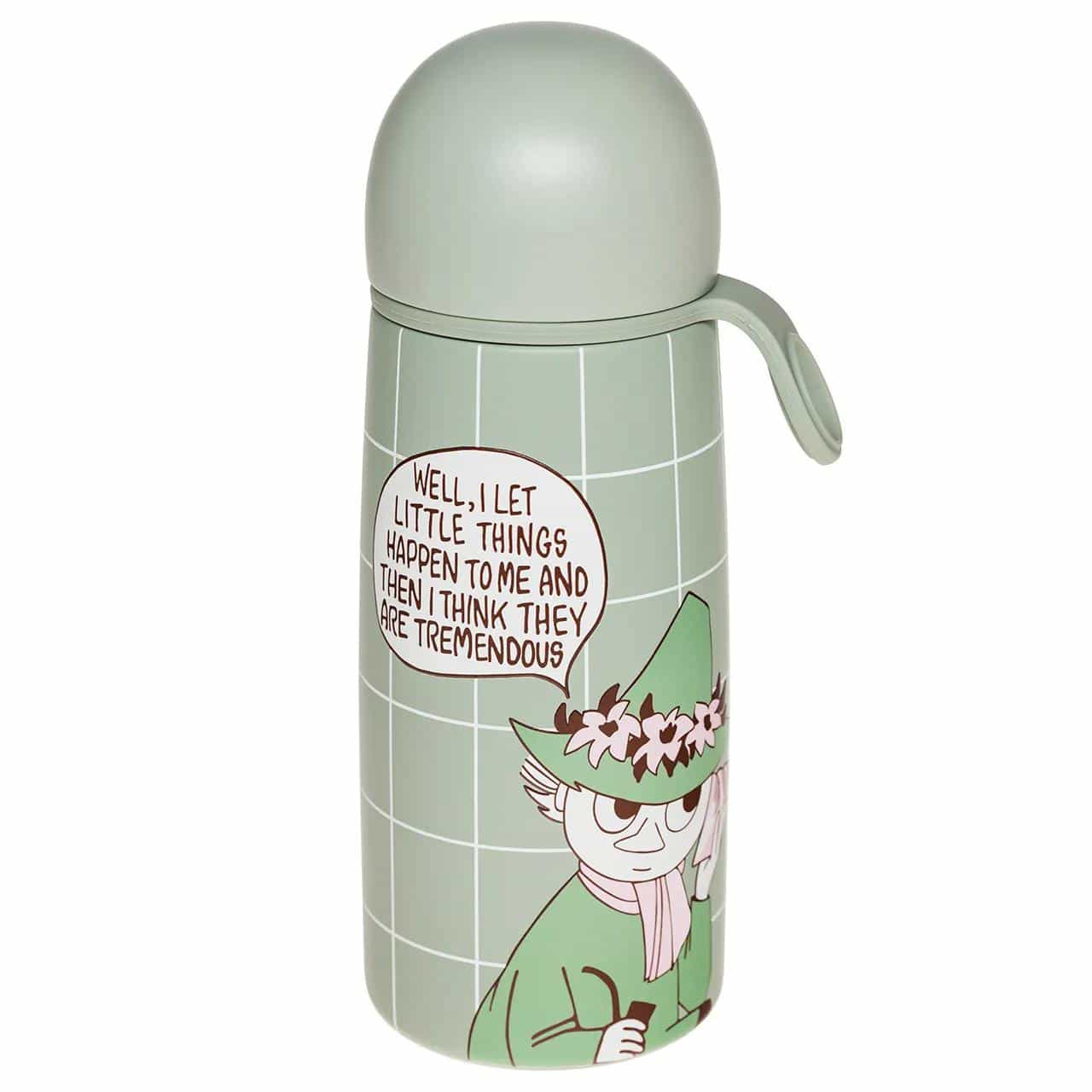 Snusmumrikken-termoflaske fra Moomin Arabia med sitatet «Well, I let little things happen to me and then I think they are tremendous».
