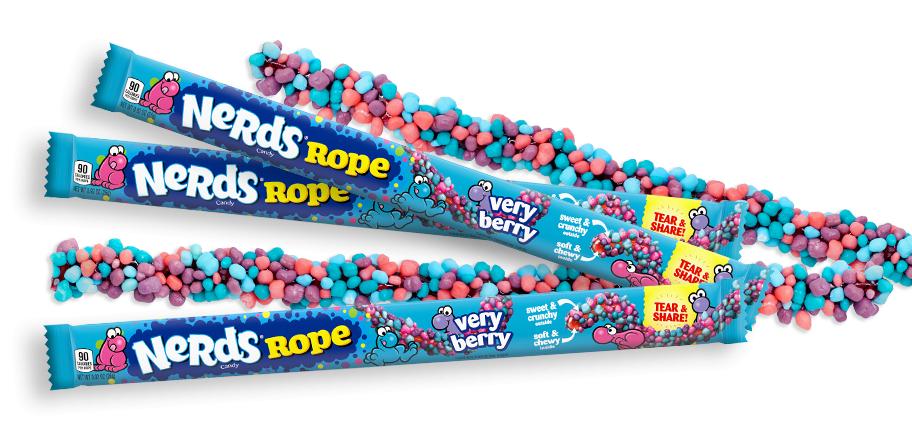 Nerds – et av de mest populære godterimerkene fra USA. Lang gummiaktig kjerne, rullet i søte og syrlige godtekuler i forskjellige bærsmaker. Bestselger!