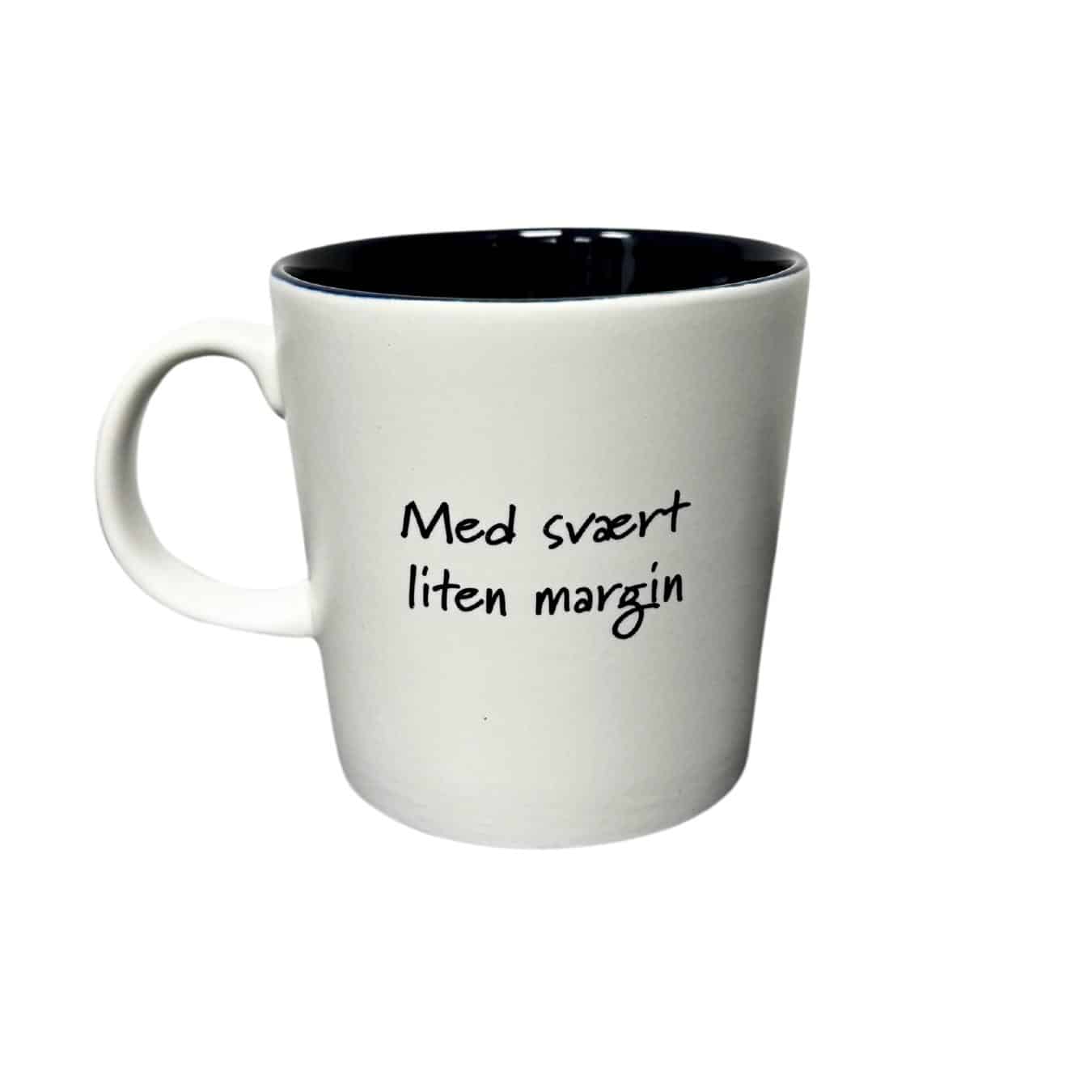 Vekk morgenkaffen til live med et smil! Våre krus er dekortert med tradisjonsrike nordnorske uttrykk på den ene siden og deres humoristiske «oversettelser» til bokmål på den andre. Dette kruset består av det nordnorkse uttrykket «På fetthåret», som kan oversettes til «Med svært liten margin» på bokmål. Perfekt for morgenkaffen eller ettermiddagste, våre krus er en hyggelig påminnelse om den unike nordnorske sjarmen og humor.