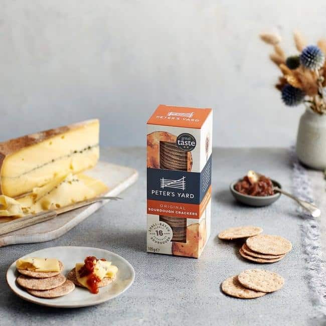 Surdeigskjeks produsert i små batcher. Deigen modnes i 16 timer med en 40 år gammel surdeigskultur. Den originale surdeigskjeksen bakt med mel fra Shipton Mill og økologisk melk. Knasende sprøtt underlag for din favoritt ost.