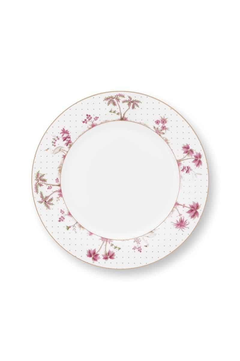 Fatet har et hvitt bakgrunn subtilt utsmykket med fine gylne prikker. Kanten har planter, en hvit hegre og en svane, noe som gir serviset et ekstra romantisk og drømmende utseende. Den fortryllende Jolie-kolleksjonen passer vakkert sammen med Pip Chique Pink-kolleksjonen.