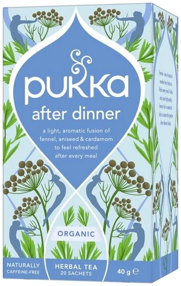 Anisfrø* (42,5%), Søtfennikel* (22,5%), Kardemomme* (15%), Lakrisrot*, Koriander frø*, Gurkemeierot*. *= 100% økologisk og etisk dyrkede ingredienser. Naturlig koffeinfri.