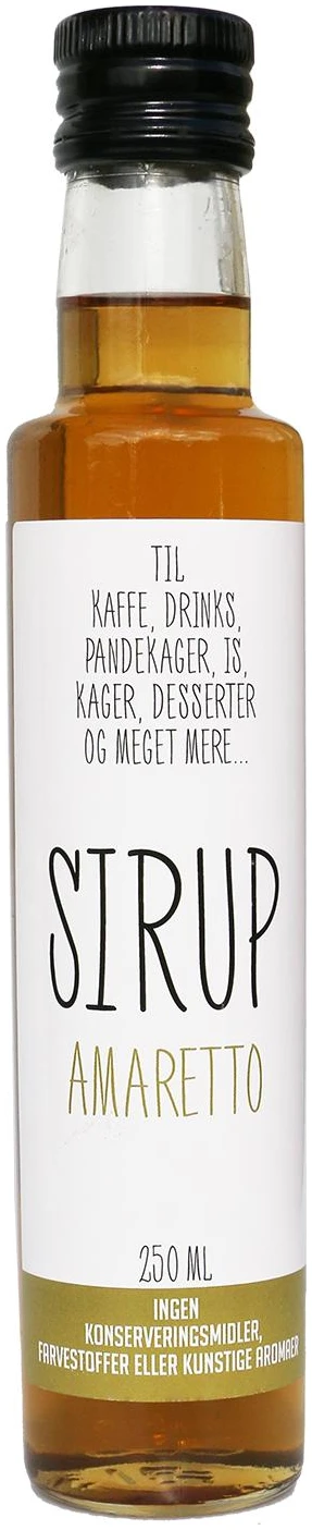 Sirup med Ameretto smak (mandel). Gir et deilig piff til kaffen, eller til drinker og desserter!