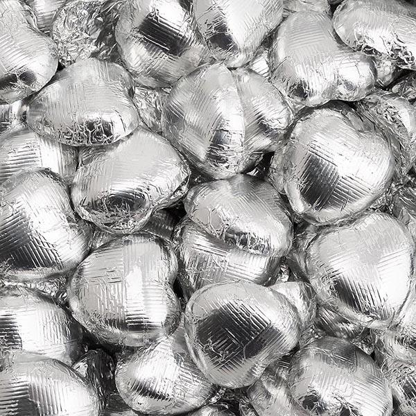 Ca. 120gr med sjokoladehjerter pakket i cellofanpose.