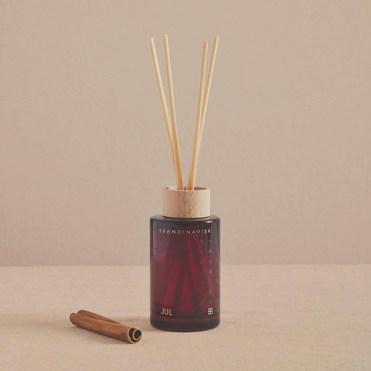 Duftpinner fra Skandinavisk med lukt av «jul». Duftnoter: Nybakte pepperkaker, nellik, krydret appelsin og gløgg.