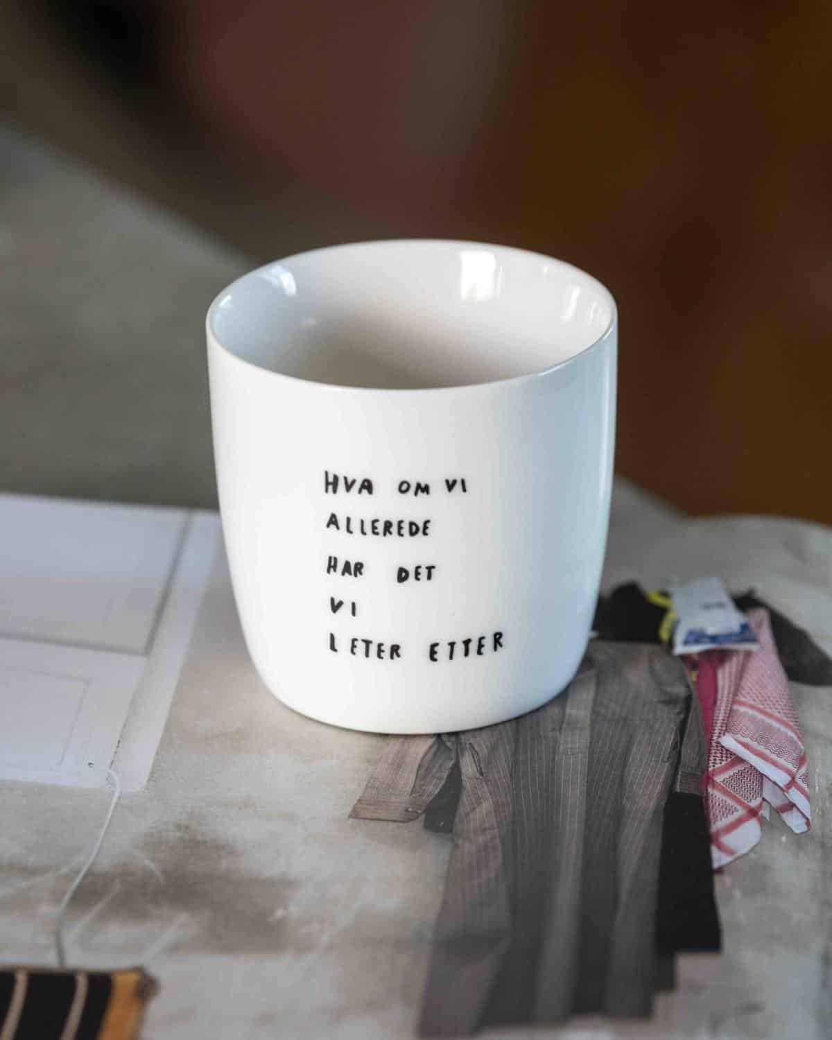 På dette klassiske kruset illustrerer Andreas Gravdal sine tekster og fine streker.