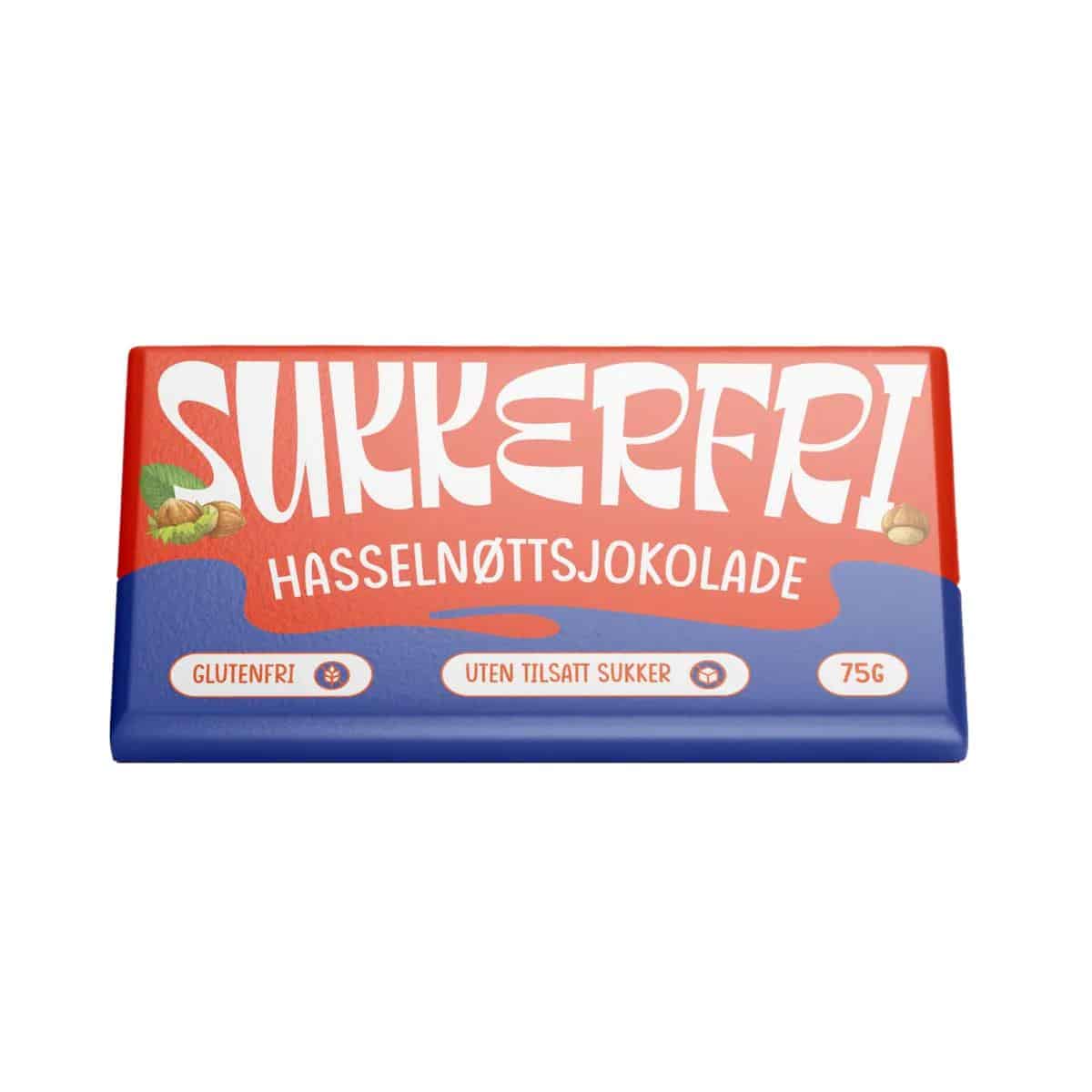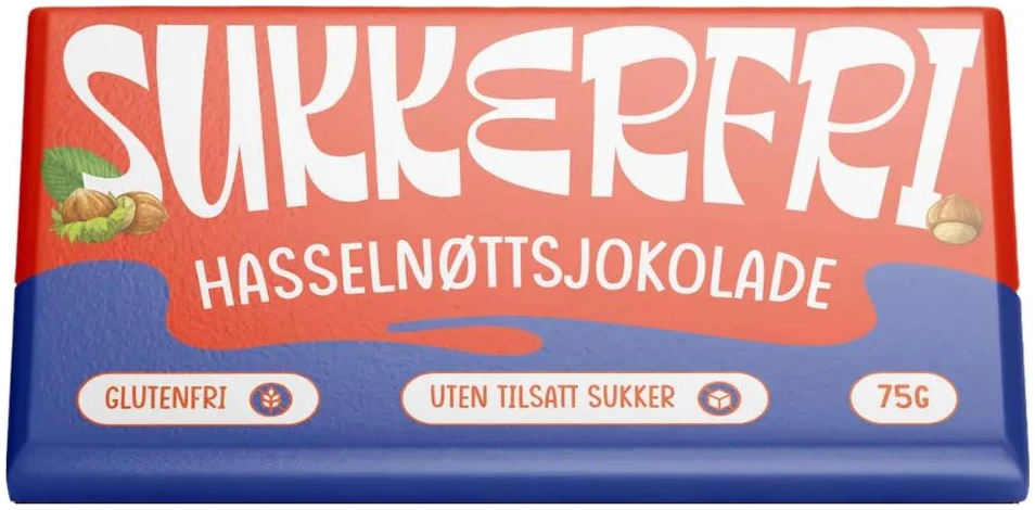Sukkerfri melkesjokolade med hassenøtter søtet med maltitol.