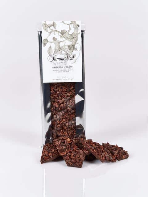 Mørk sjokolade med ristede, knuste Arriba Nacional-kakaobønner