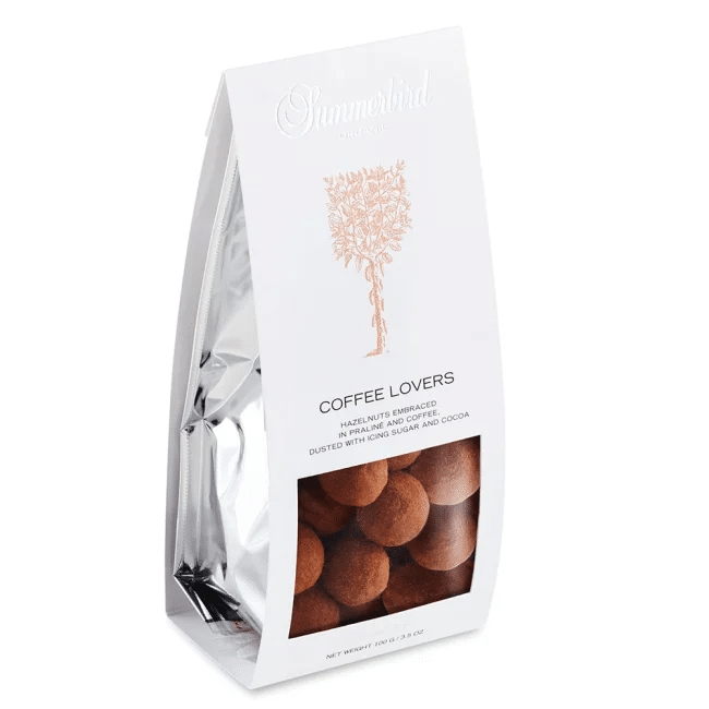 Lettristede italienske hasselnøtter, trukket med praliné, Amber Classic-sjokolade og kaffe.