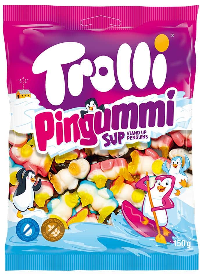 De morsomme, fargerike pingvinene vagger langs de fruktige smakene av bringebær, jordbær, solbær og røde frukter. Disse søte små karene liker ikke å være alene og vil heller bli spist i grupper! Og best av alt, Trolli Pingummis står oppreist helt alene og er derfor perfekte for leken snacks og dekorasjon!