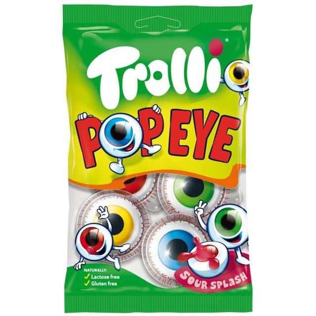 Trolli Pop Eye er gelegodteri formet som øyner med et supersurt flytende fyll inni!