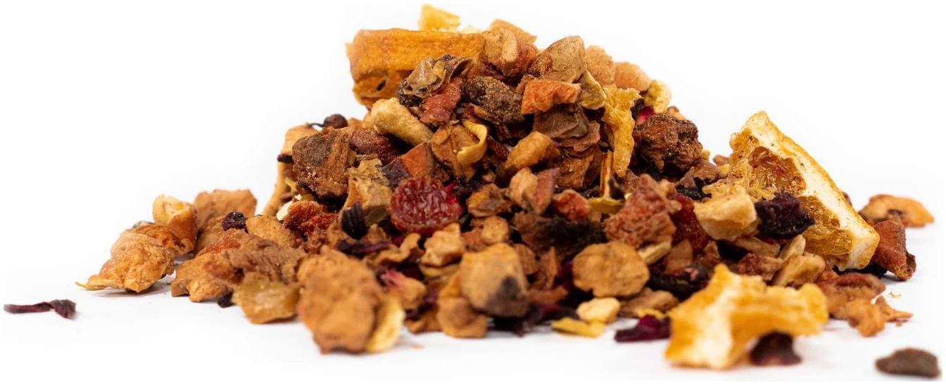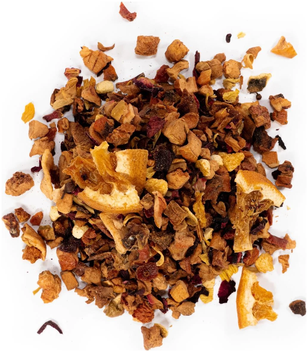 Opplev vår forfriskende Villappelsin-te, en søt og leskende fruktblanding som tar deg med på en smaksreise av friske villappelsiner. Sammensetningen av ingredienser, inkludert eplebiter, hibiskus, nypeskall, rødbetebiter, epleskiver, sitrusskall, sitrusskriver, naturlig sitrusaroma, appelsinkronblader, appelsinjuicebiter, solsikkekronblader, aroma og roseblader, gir denne teen en behagelig og kompleks smakspalette. Nyt hvert øyeblikk av denne fruktige blandingen, hvor sødmen fra villappelsinene danser harmonisk med de ulike elementene.