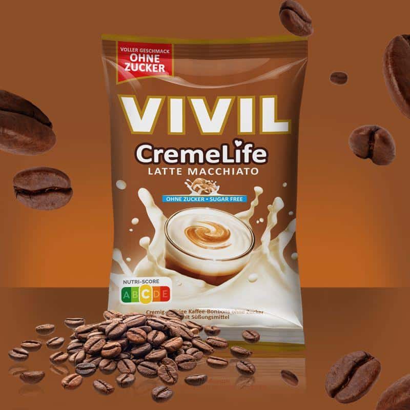 Kremet sukkerfri drops fra Vivil CremeLife med smak av Latte Macchiato.